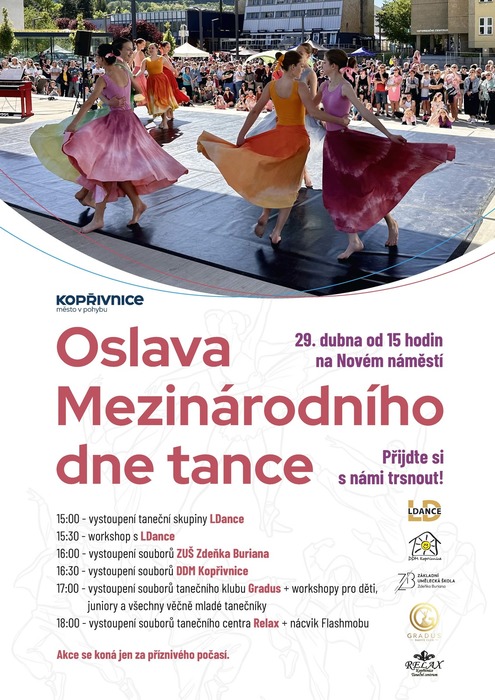 Město Kopřivnice ve spolupráci s místními spolky a organizacemi vás srdečně zve na oslavu Mezinárodního dne tance!